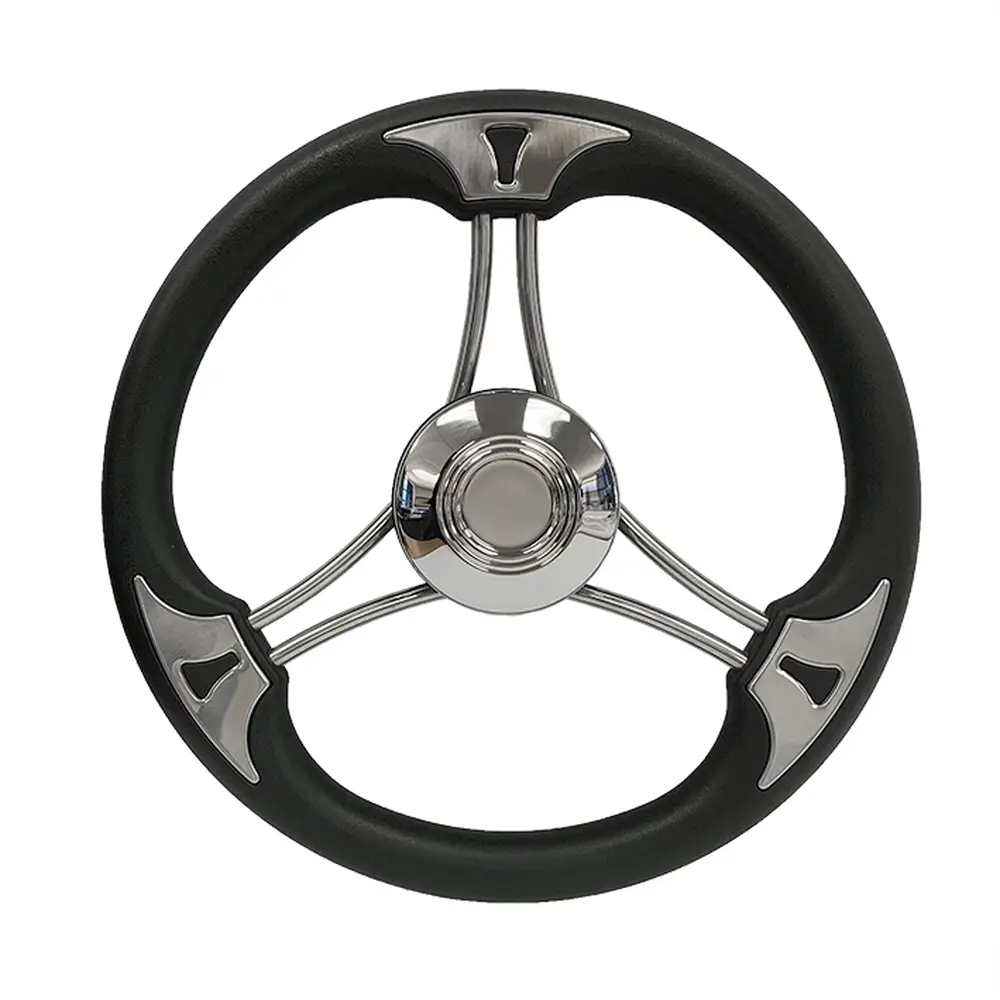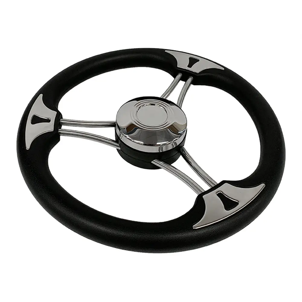 Crafted from high-grade stainless steel with a sleek black finish, the Nautilus 3-Spoke Flat Steering Wheel combines durability with modern style. Its flat profile and ergonomic grip provide precise control and comfort. Designed for long-lasting corrosion resistance, it’s the perfect upgrade for a clean, contemporary helm.